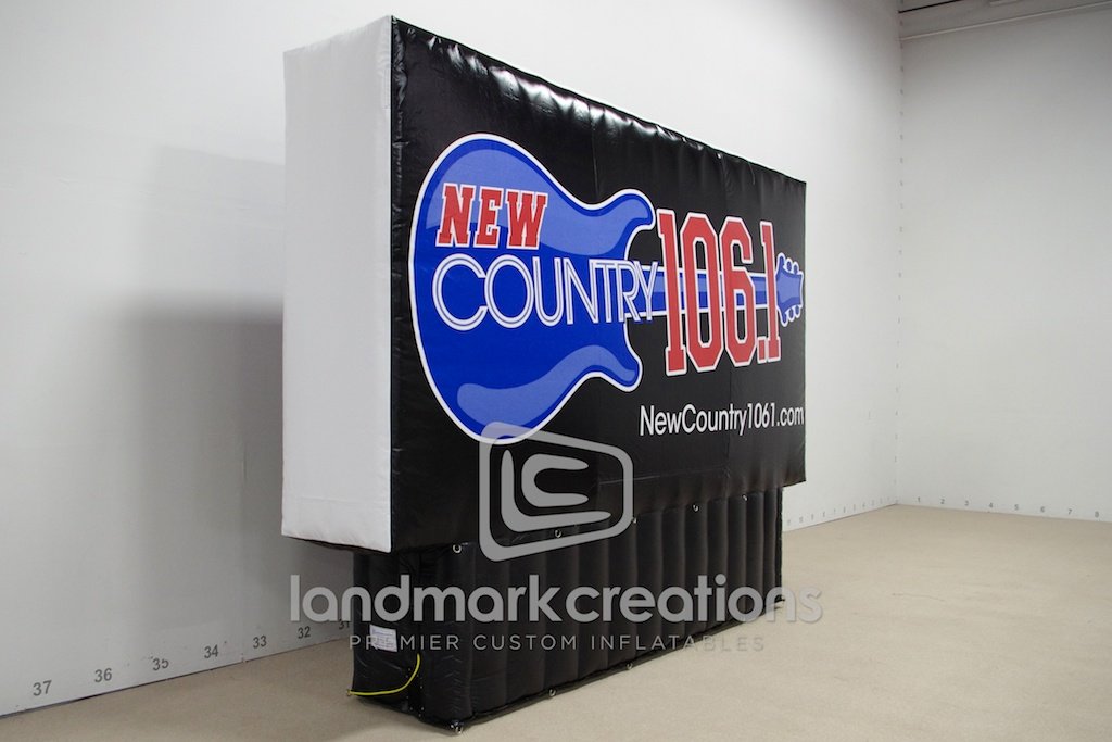 This giant inflatable display rocks at concerts and mobile marketing tours to promote radio station, New Country 106.1 FM. The custom inflatable billboard is a unique way to advertise and draw attention.