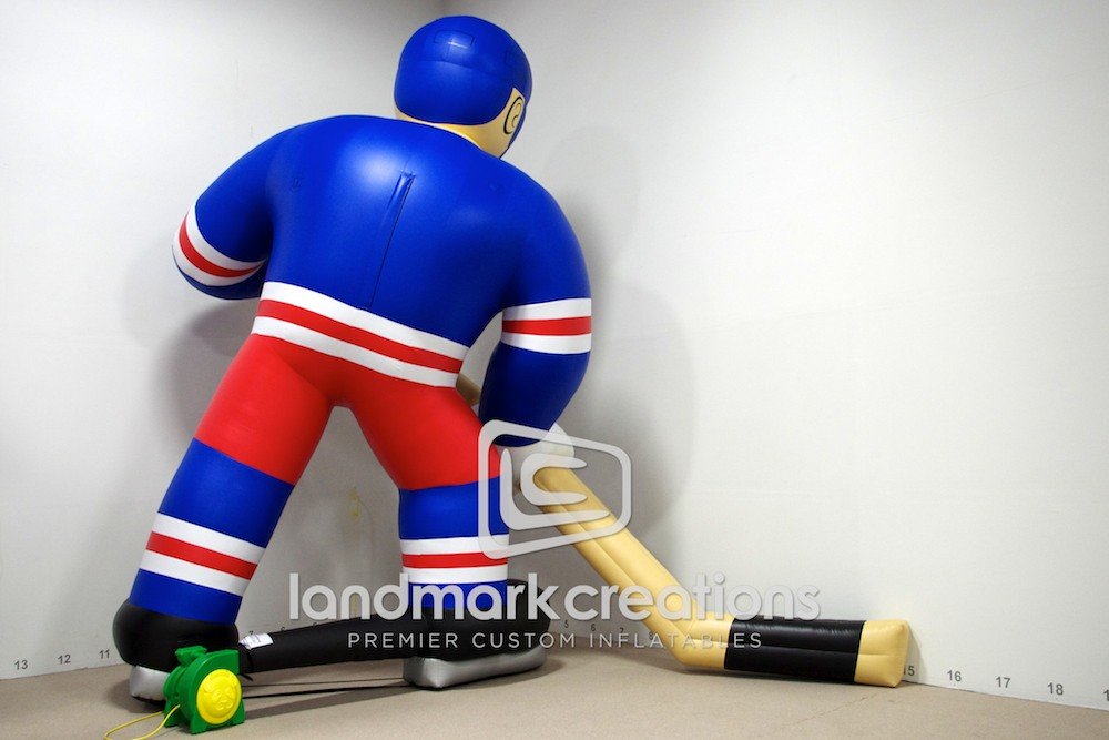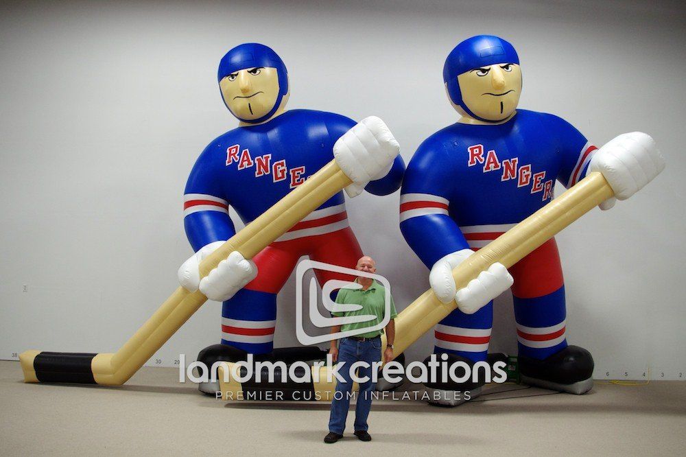 Giant hockey mascots are a fun way to show team spirit! The New York Rangers increase traffic at 'fan fests' and events around New York City with these giant inflatable player replicas.