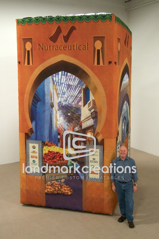 Get creative with your custom inflatable kiosk like Nutraceutical. Digital graphics can be wrapped around kiosks and booths to create more interest.