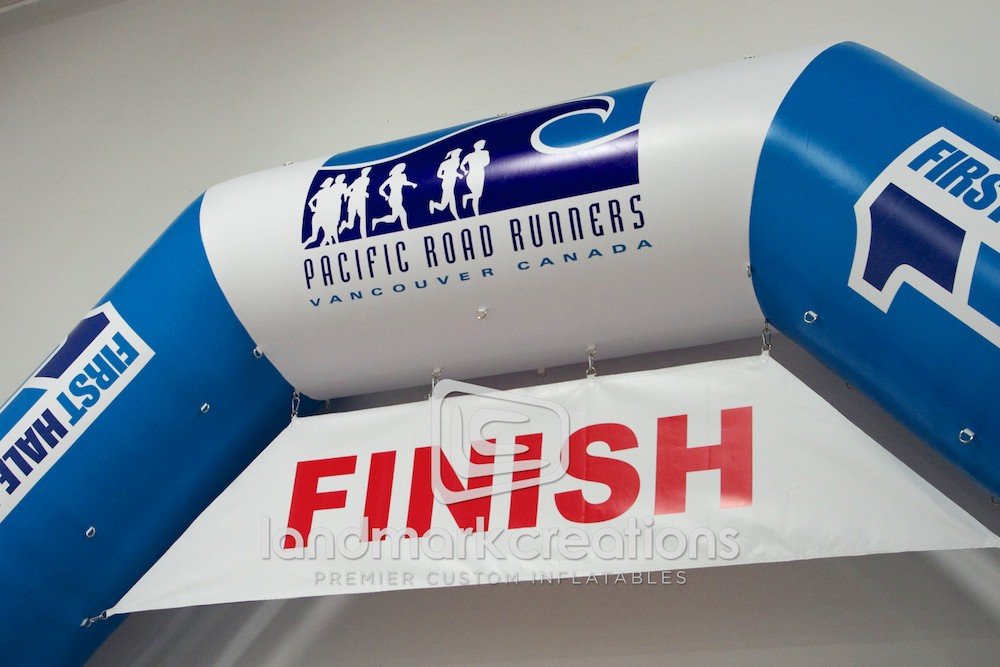 Recreational running club, Pacific Road Runners, inflates their custom start and finish line arch at club runs and local road races! Inflatables designed by Landmark, like this race arch, will last for years thanks to high quality fabric and hardware.