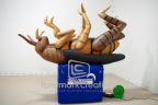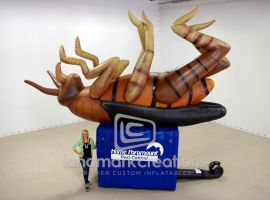 Home Paramount Pest Control promotes their services in an effective way by inflating a giant cockroach display featuring their logo on a billboard style pedestal.