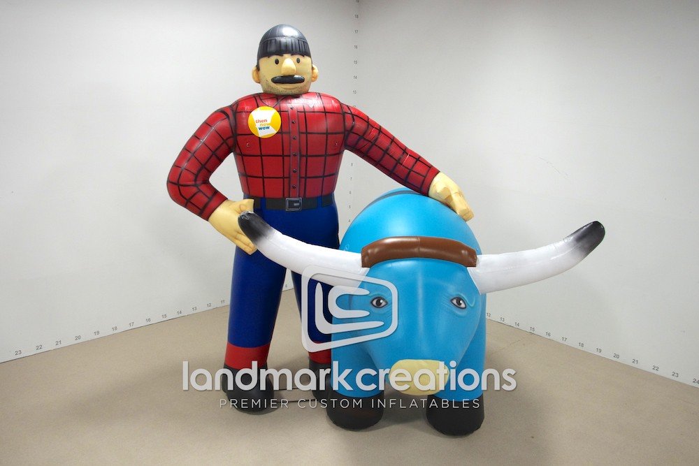 The Minnesota Historical Society opened the new exhibit 'Then Now Wow' in style with these giant inflatable Paul Bunyan and Babe The Blue Ox characters. Visitors were seen taking pictures with the inflatable duo on the Minnesota History Center lawn.
