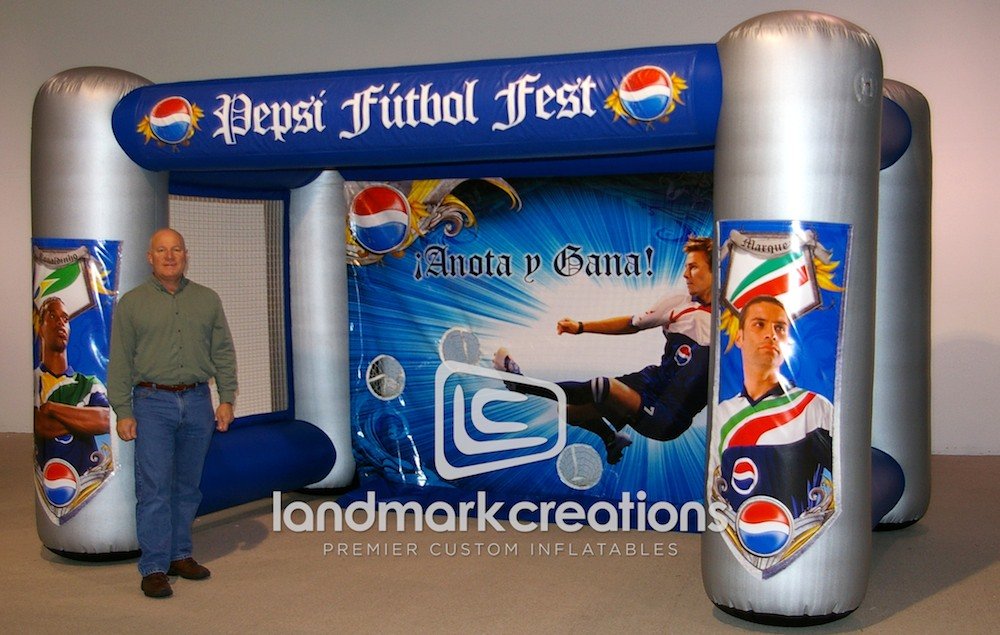 Attract crowds with an inflatable soccer cage! This inflatable sports cage for Pepsi gets audiences involved at community and sporting events.