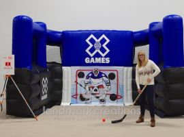 Custom-designed for the Philadelphia Flyers, this inflatable slap shot in the shape of their emblem attract attention at home games and gets Flyers fans involved in the sport!