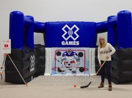 Interact with hockey crowds and generate excitement at pre-game contests & events with a giant, inflatable hockey goal. The Philadelphia Flyers inflate this pop-up hockey goal at a variety of sporting events to increase fan participation!