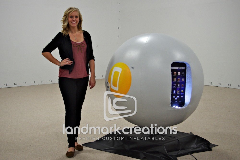 This inflatable product replica display of The O was placed atop the Physical Apps trade show booth at Toy Fair 2012 in New York. Using LED lights and a rotating base, it got immediate attention from trade show attendees.