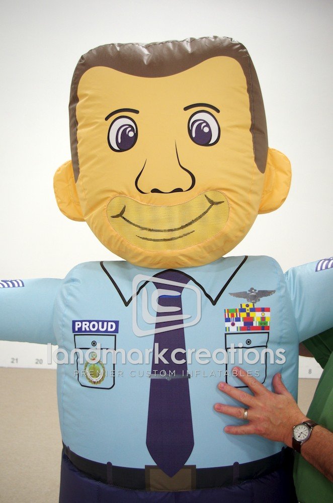 Inflatable costumes, like this custom designed airman, are a fun way to gain attention at military recruitment events. Mascots are friendly and approachable, making for easy interaction with crowds.