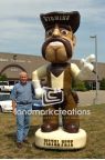 Standing 10 feet tall this inflatable cowboy mascot, Pistol Pete, helps add school spirit and provides a photo opp at campus events surrounding the University of Wyoming.