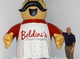 Giant inflatable mascots make a statement at grand openings. The Pizza Pete mascot provided a warm welcome to customers at their new restaurant location.