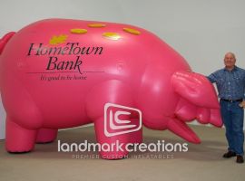 Custom inflatables add interest to community events and promotions. This inflatable piggy bank for Plains Commerce Bank increased visual appeal at marketing events.