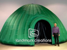This inflatable GeoDome for The Elumenati, LLC, gives 360 degrees of visual effect to educate visitors. Bringing scientific data to life with real-time applications, this inflatable shares information with science centers, schools, and research labs.