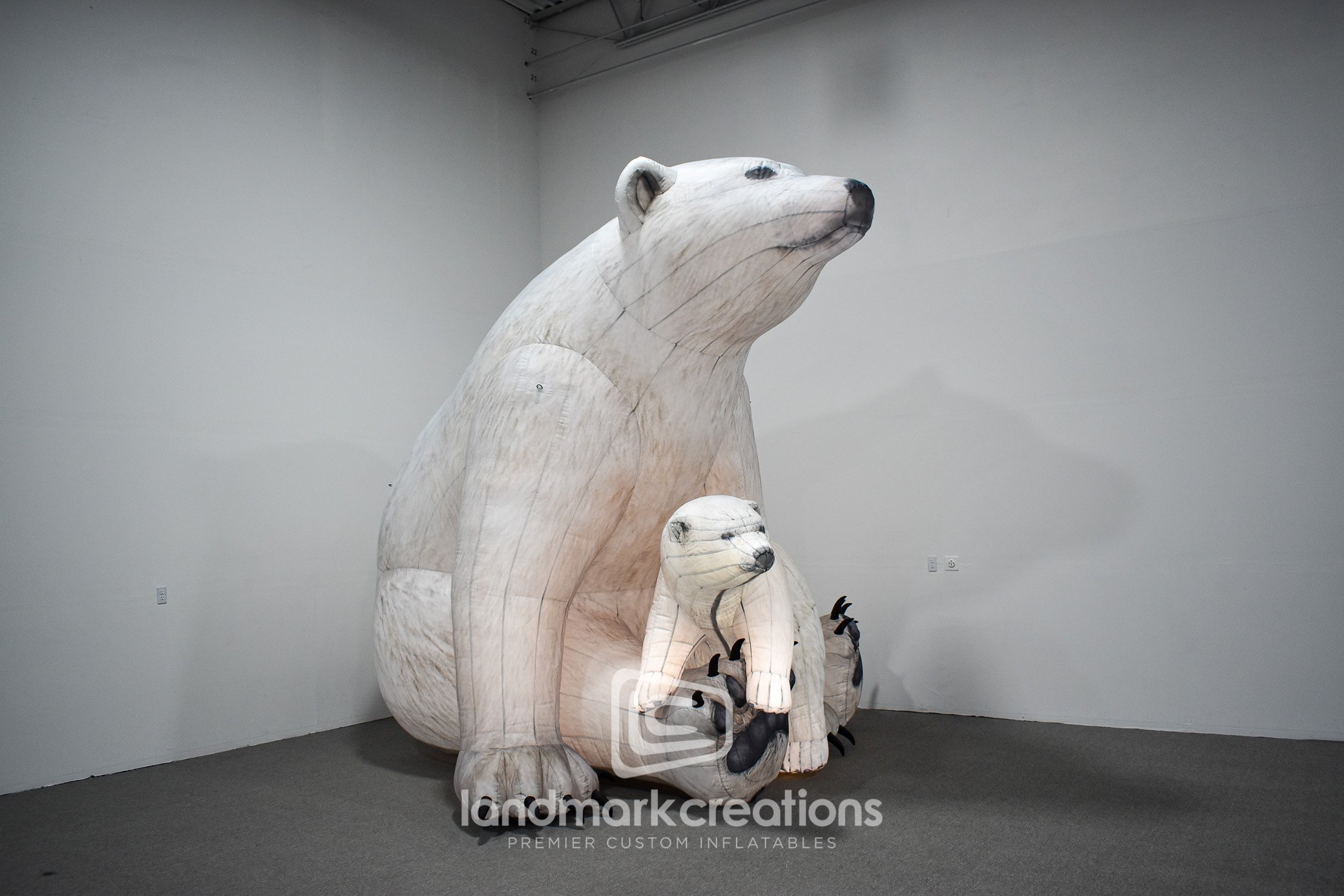 Visitors to the Arctic Region of "Nature Illuminated", and outdoor event at the Minnesota Zoo, were greeted by this adorable mother/cub inflatable polar bear display. With their detailed fur textures and internal lighting systems, these wildlife replicas provide realistic displays for events both day and night.