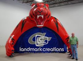 The Ponca City Wildcats inflate their giant wildcat head tunnel, complete with school colors, at football games to get fans cheering!