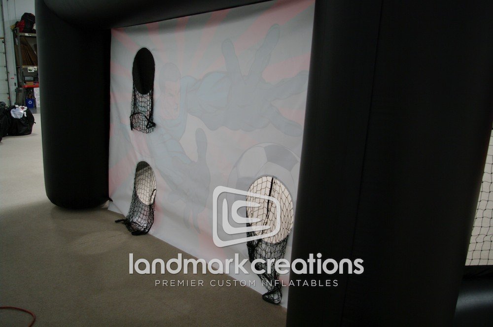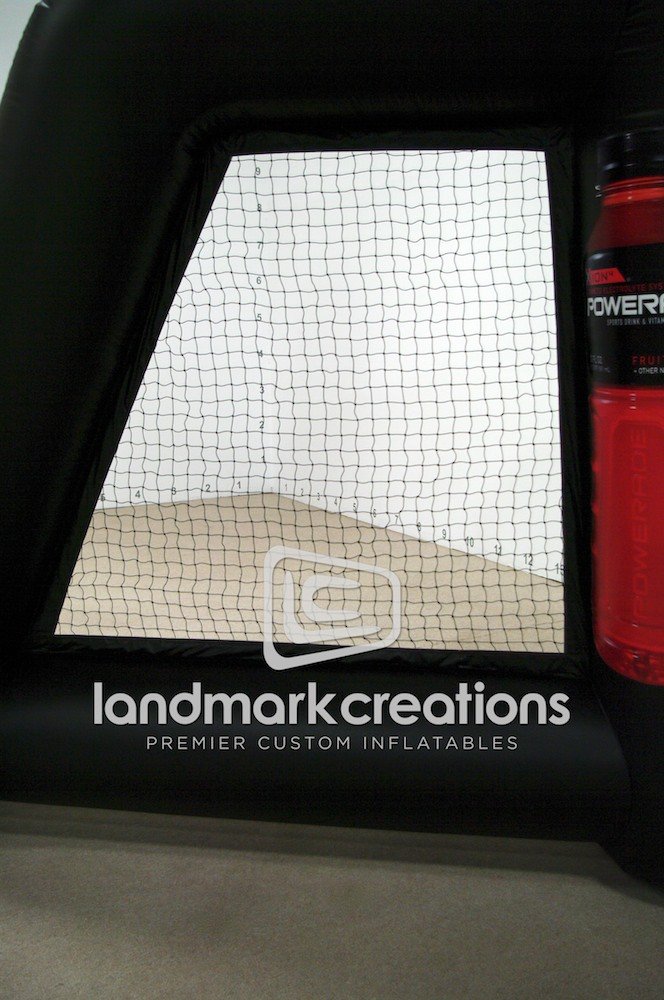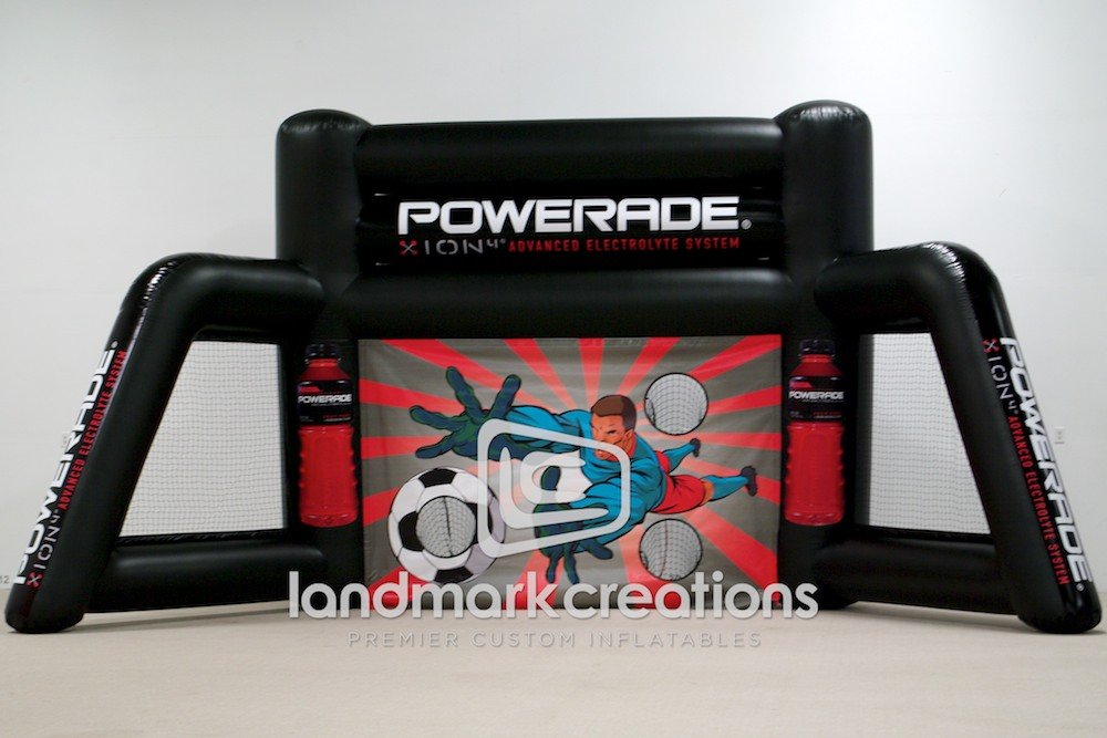 Beverage marketers used this inflatable soccer goal to promote the new drink, POWERADE ION4, at sporting events. Inflatable sports cages are a great addition to marketing campaigns for companies who promote their products to young athletes.