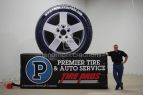 The automotive promotional arena is packed full, so smart marketers know to choose tools that deliver big impact. Premier Tire Pros can use this giant logo in multiple outlets for high visibility.