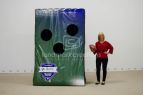 Looking for a way to engage prospects at a trade show? Quest Diagnostics uses their football toss to bring crowds into their booth.