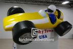 Inflatable billboards, like this 15-foot tall race car billboard for Hobby Town USA, can be designed with a message area. Personalize messages to welcome car enthusiasts to your event or inform customers of new promotions.