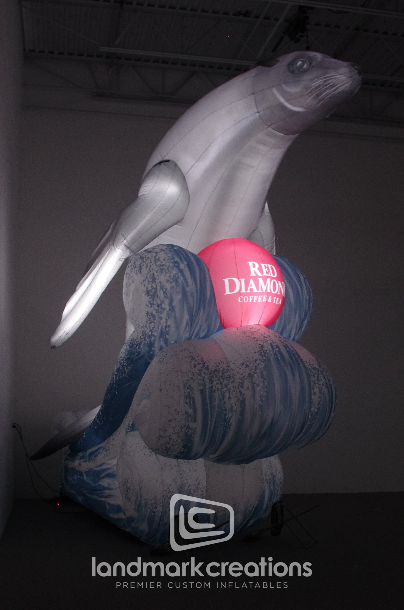 Engage crowds at zoos, aquariums, or museums with giant custom displays. This giant inflatable sea lion sponsored by Red Diamond is a featured photo opp for zoo visitors. With an internal light system, the custom sea lion display engages guests both day & night.