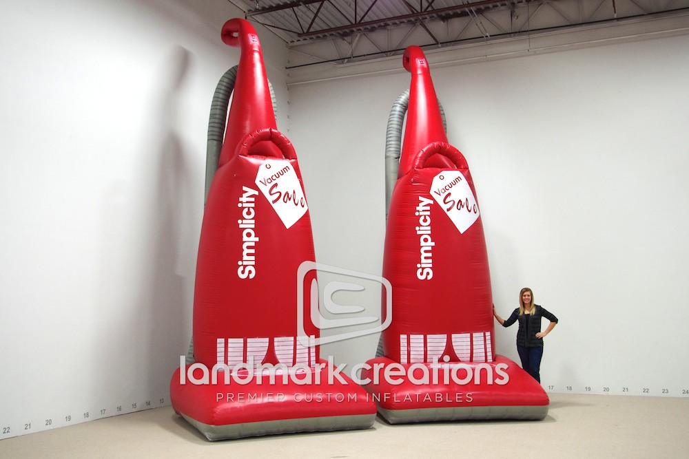 Marketing directors who need to promote new product lines in a huge way turn to giant inflatable product replicas, like these giant vacuums, to attract attention and increase foot traffic at retail locations.