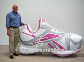 Product replicas, like this Reebok RealFlex shoe, are custom built to look like an exact reproduction of the product. Shoe replicas add an attention getting display to racing events, trade shows and even the biggest of fitness conventions!