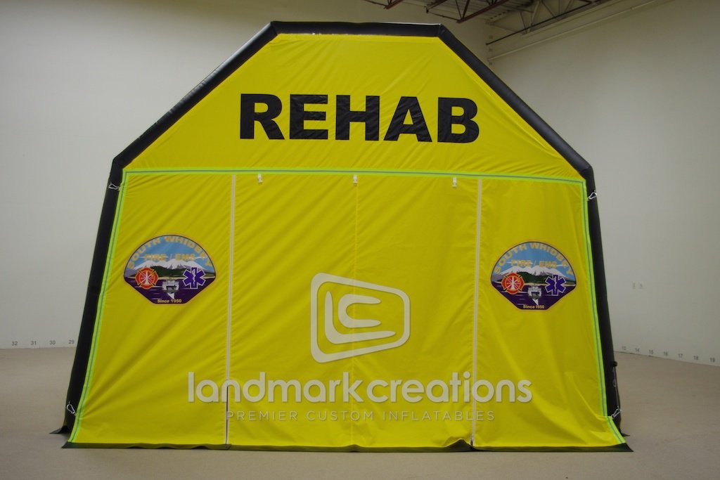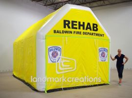 Inflatable rehab tents are a portable way to bring shelter to an emergency. Fire Departments use inflatable tents as a central point to treat injured individuals while keeping personnel and victims sheltered.