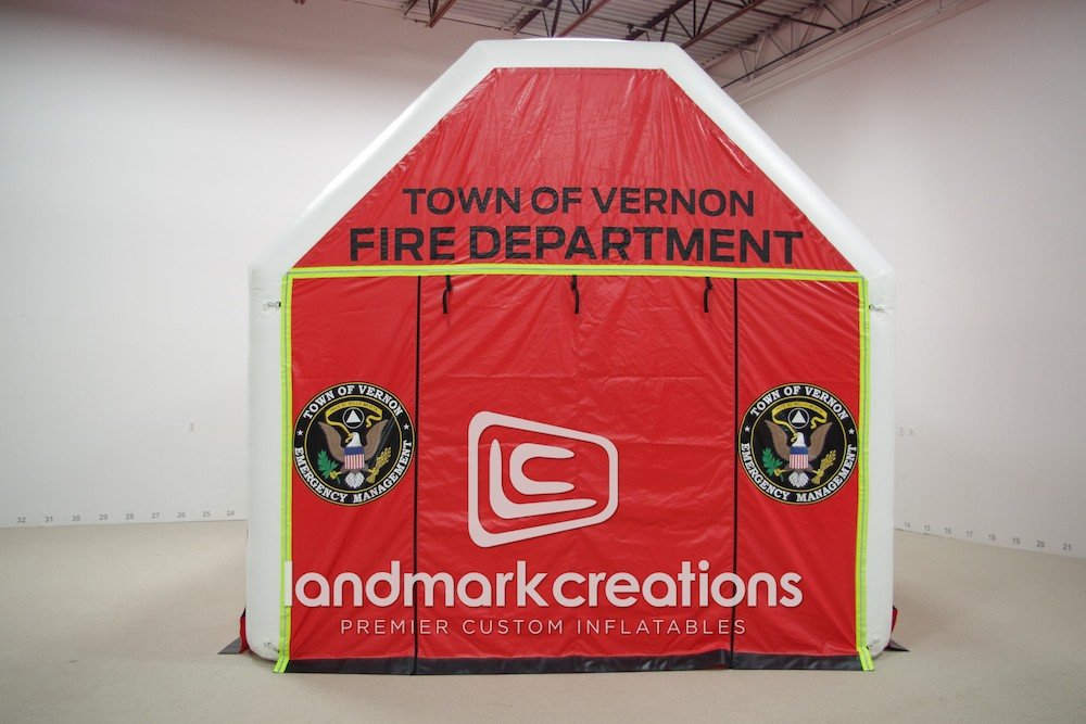 Inflatable rehab shelters offer firefighters, emergency personal and first responders a safe area to escape extreme heat, rest for a few minutes and replenish their fluids. This portable shelter for the Vernon Fire Department & EMS is easy to manage and can be set up within five minutes.