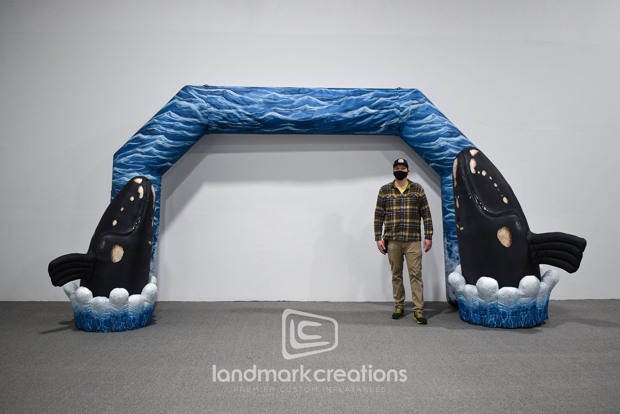 This custom inflatable arch featuring two right whale replicas was created by Clearwater Marine Aquarium for their Right Whale Festival. The festival celebrates the annual return of the North Atlantic right whales to the warm coastal waters. Because inflatables are easy to set up and transport, they can be used by zoos and aquariums for a wide variety of exhibits and events.