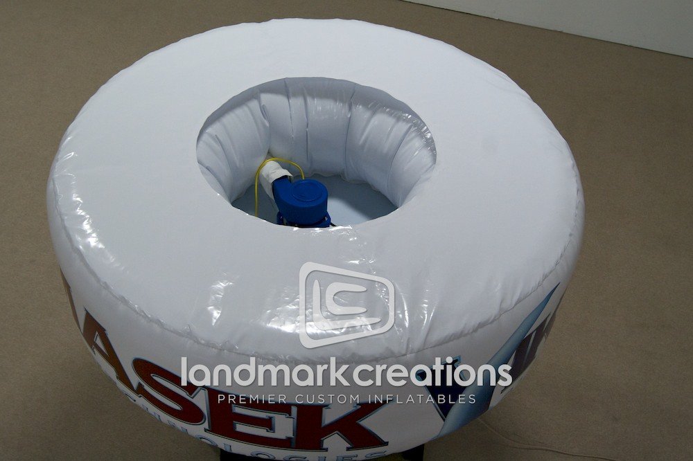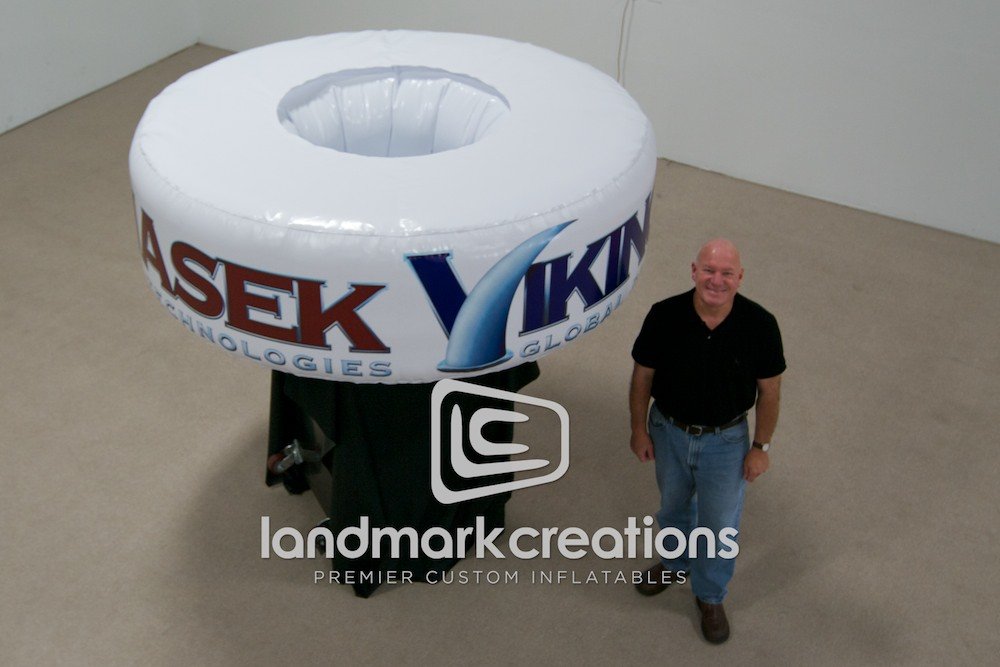 This inflatable round logo for Viking Masek Global Packaging Machine Manufacturers is used as a locator when they are at events. This custom logo features an internal motor which rotates the circular message for 360º viewing at events.