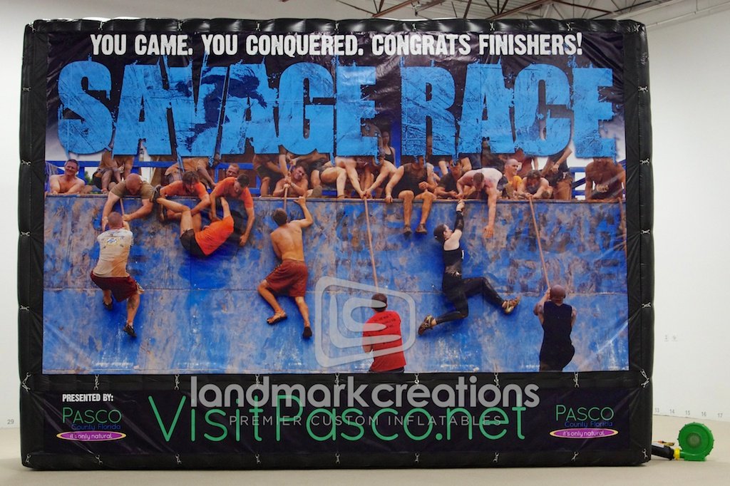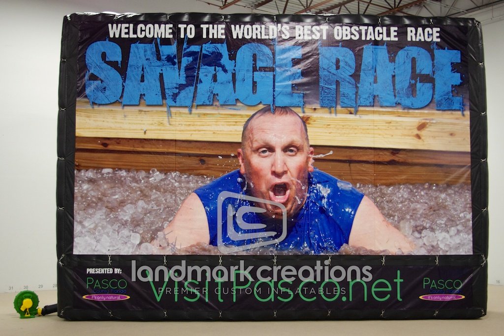 Savage Race, a mud and obstacle course, inflates this giant billboard at events throughout the United States. Easy to inflate and display, the billboard is a great backdrop for photo opportunities.