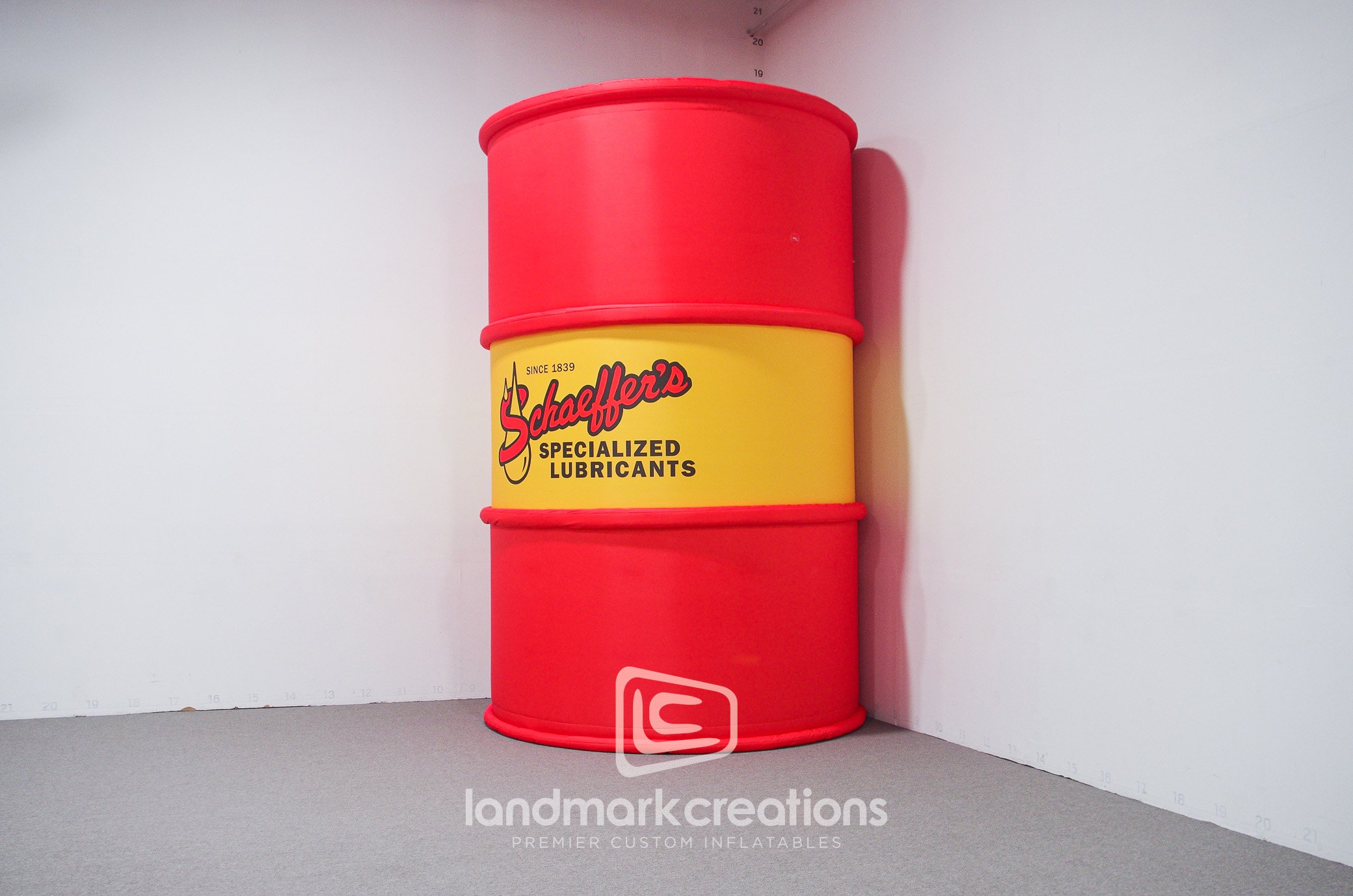 Schaeffer's Oil created a giant, fifteen-foot replica of their iconic oil drum to get noticed and reinforce brand recognition at outdoor community events.