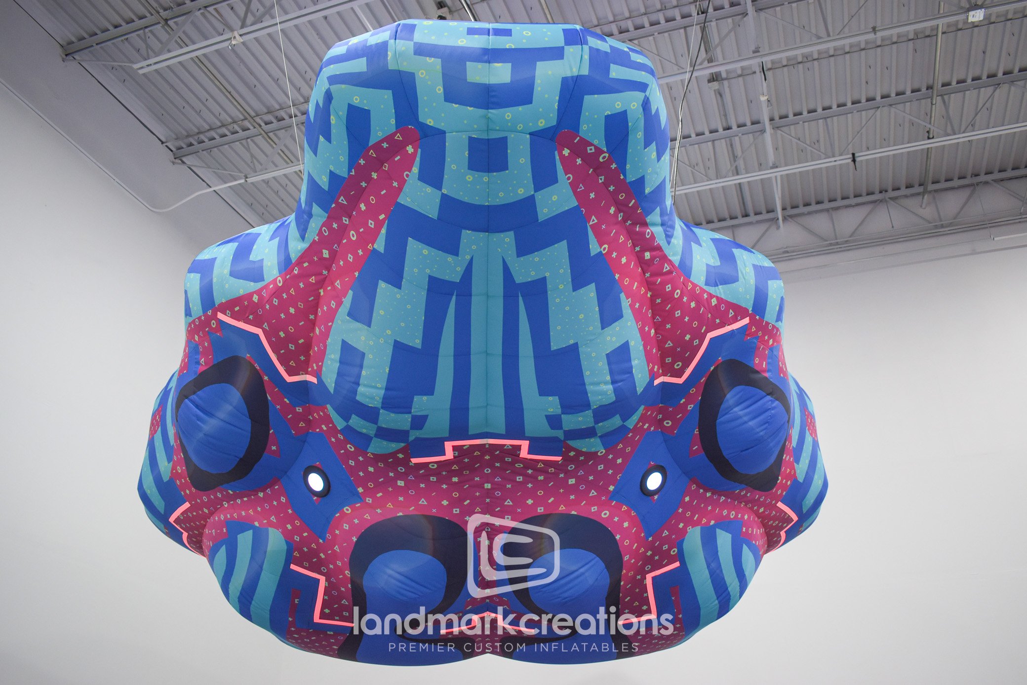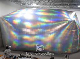 Pneuhause Studios worked with Lifeforms.io to conceptualize a giant inflatable version of a spaceship from their video game, Discovery, as a rooftop installation. The giant inflatable display was suspended as part of their multimedia exhibit to promote the new game.
