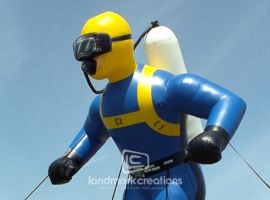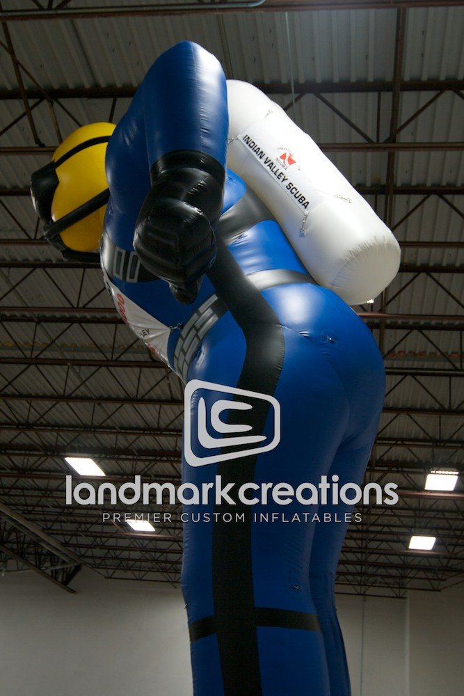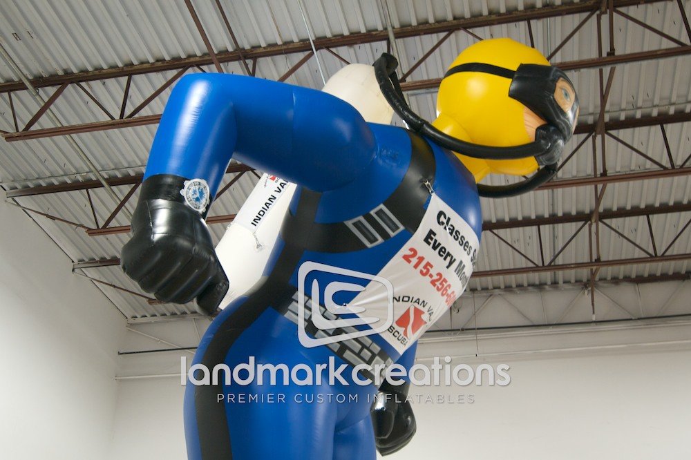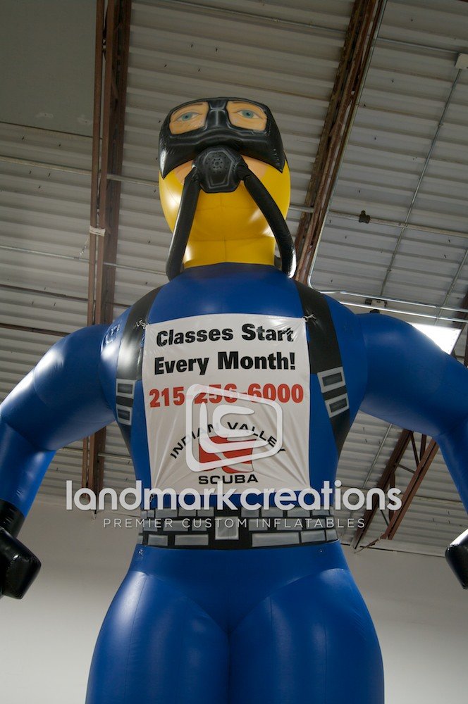 Indian Valley Scuba used this giant, inflatable scuba diver to promote diving classes outside of their diving school. Standing 20 feet, this inflatable turned heads and got immediate attention.