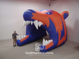 A local SONIC Drive-In purchased this giant inflatable football helmet with extension sports tunnel for the Searcy Lions. Local businesses are eager to sponsor inflatable tunnels because of the attention their advertising draws.