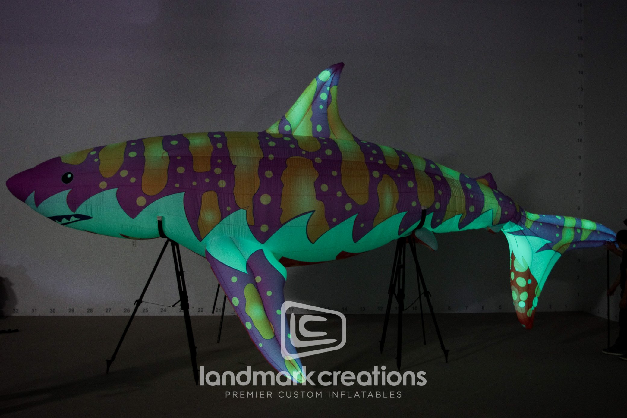This vibrant Inflatable shark was seen swimming around on stage at SeaWorld’s 2017 Electronic Ocean Spectacular. At 25’, this shark glowed under the event’s black lights and was a real spectacle for audience members.