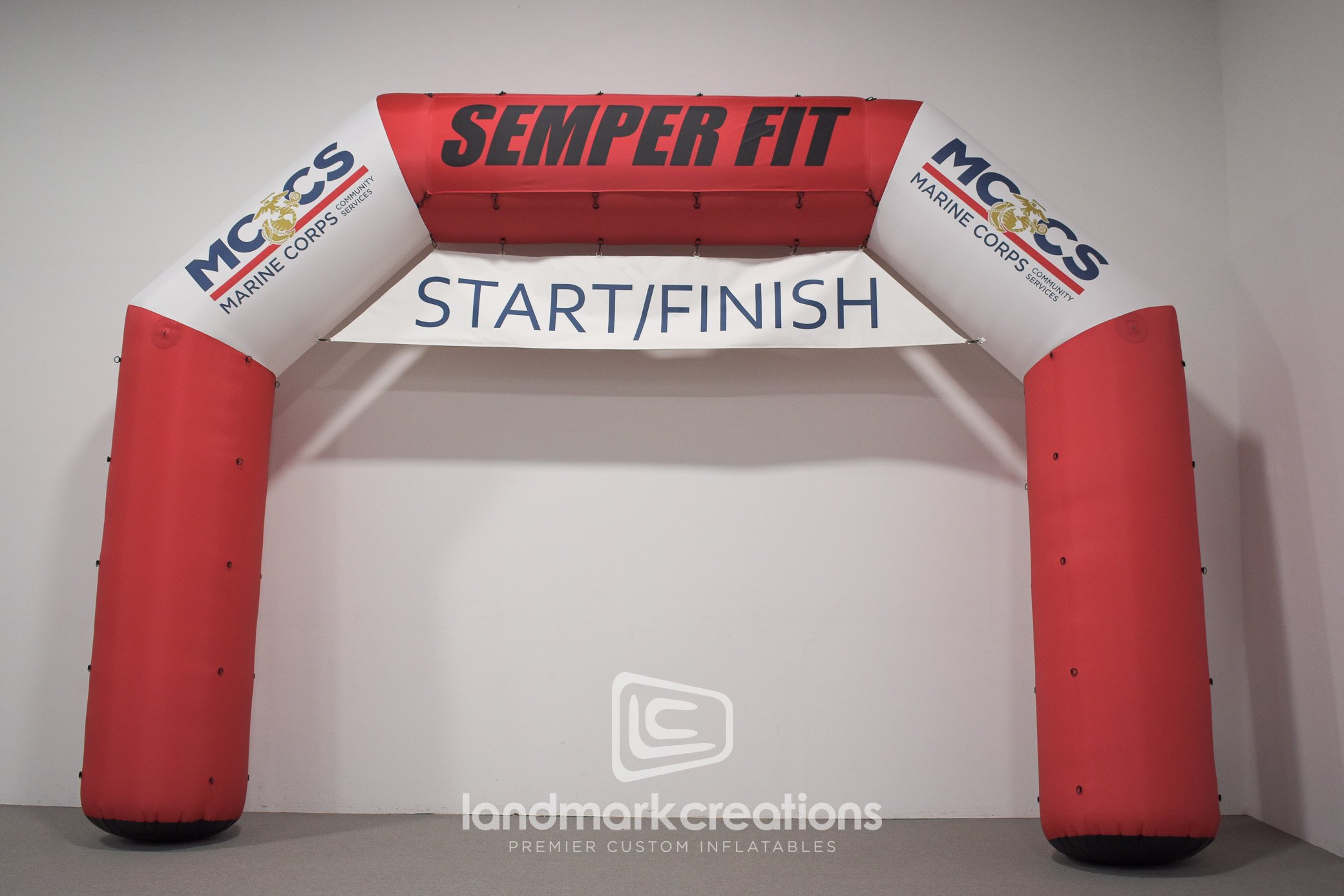 The Marine Corps Community Services (MCCS) organized the 8th Annual 24 at 29 Endurance Run and Relay Race "Semper Fit," a challenging and grueling 24-hour endurance event held at the Marine Corps Base in Twentynine Palms, California. As a way to enhance the race experience and create a memorable finish line for the runners, MCCS decided to use an inflatable custom arch as the start/finish line. The inflatable arch served as a visible marker and its vibrant red & white coloring added an element of excitement and festivity to the event. The arch's branding elements also help create a sense of unity and camaraderie among the runners and spectators. Inflatable arches are easy to set up and take down, making them a practical choice for any race event that requires quick and efficient set-up and break-down times.