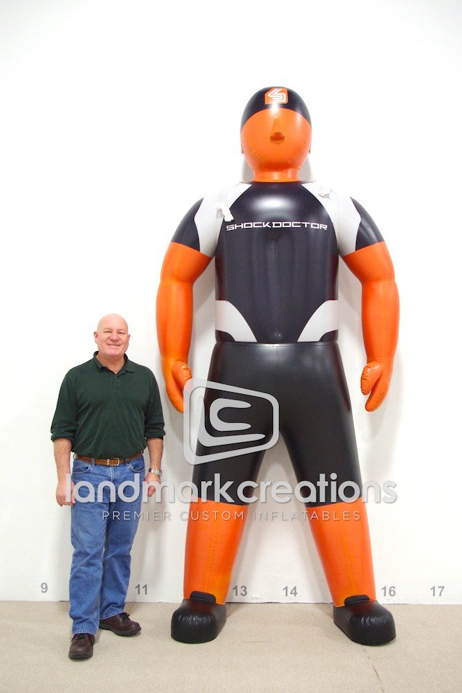 Shock Doctor, a leader in mouth guard technology and sports protection, inflates their orange athlete mannequins, decked-out in Shock Doctor gear, to attract attention during their Hardcore Protection Fearless Performance Tour.