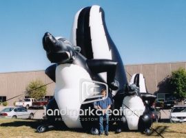 This inflatable skunk was used to attract attention at a demonstration in front of H&M stores while speakers accused them of running sweatshops.