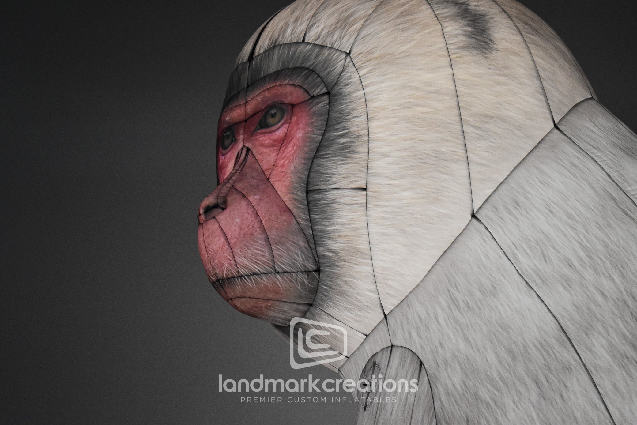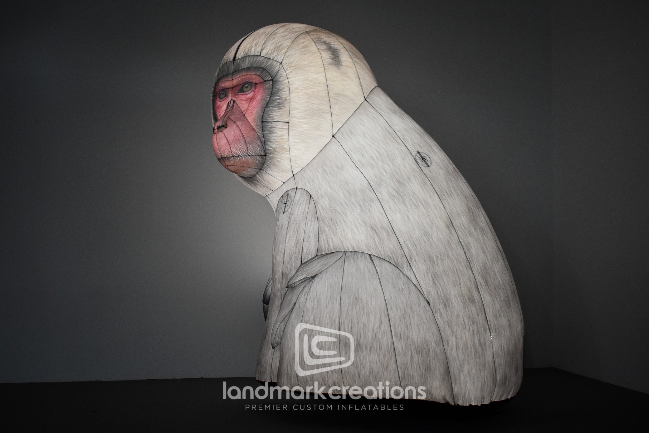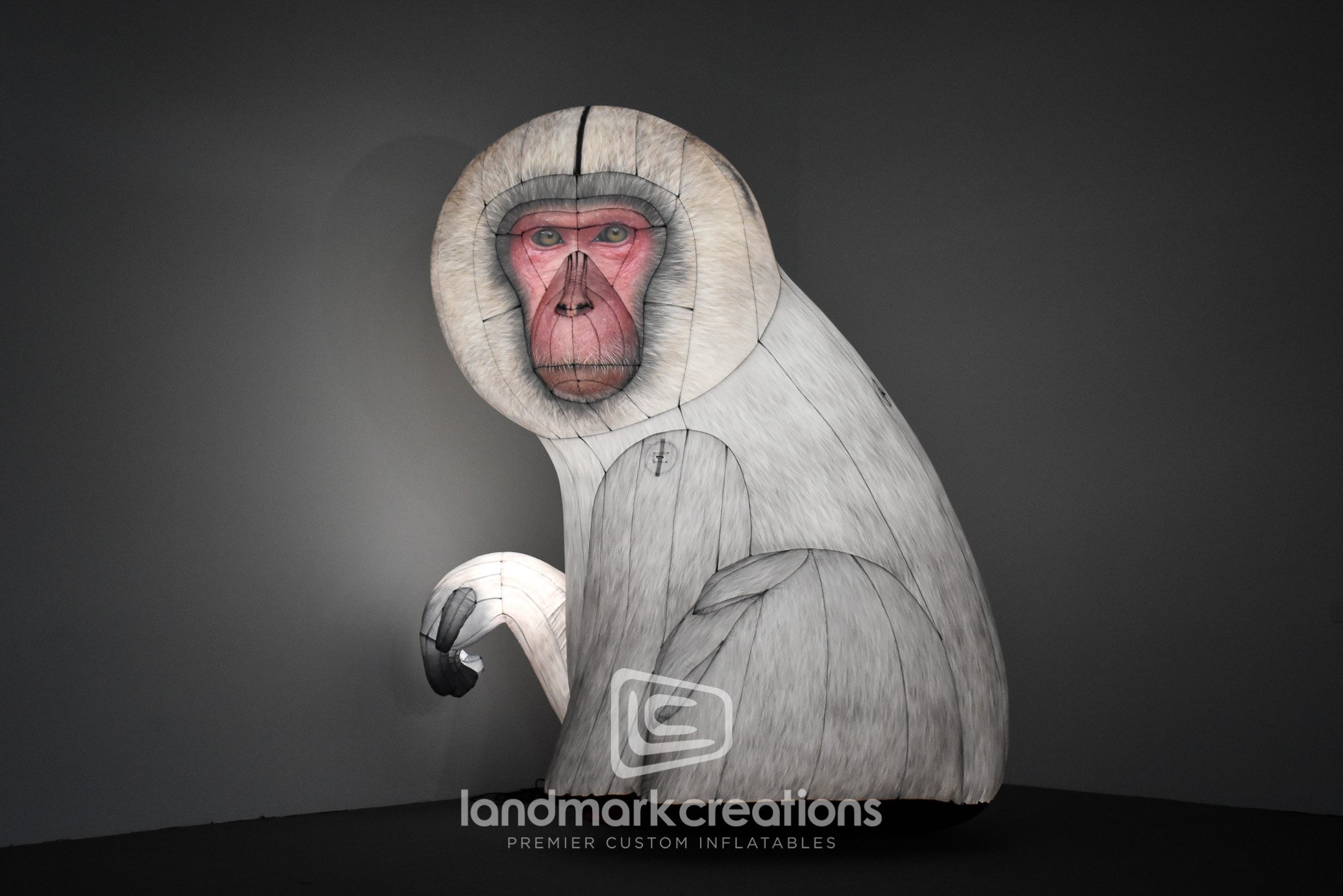This giant snow monkey greets guests at the Minnesota Zoo's outdoor exhibit, "Nature Illuminated". The snow monkey, along with the Amur tiger and brown bear, greet visitors who enter the temperate forest biome section of the exhibit. With its highly detailed texture and internal light system, this display performs well both day and night.