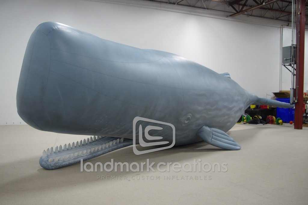 This massive and extremely realistic inflatable whale display for Mystic Seaport is mounted onto a custom trailer and used as a rolling educational exhibit. The Museum of America and the Sea teaches visitors about the history of whaling.