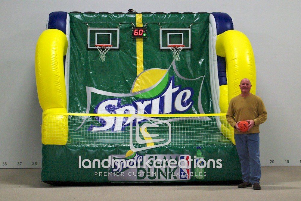 Sprite gets a slam dunk in customer participation with this custom-designed inflatable basketball toss! Customers get involved with brands when interactive sports cages are added to events.