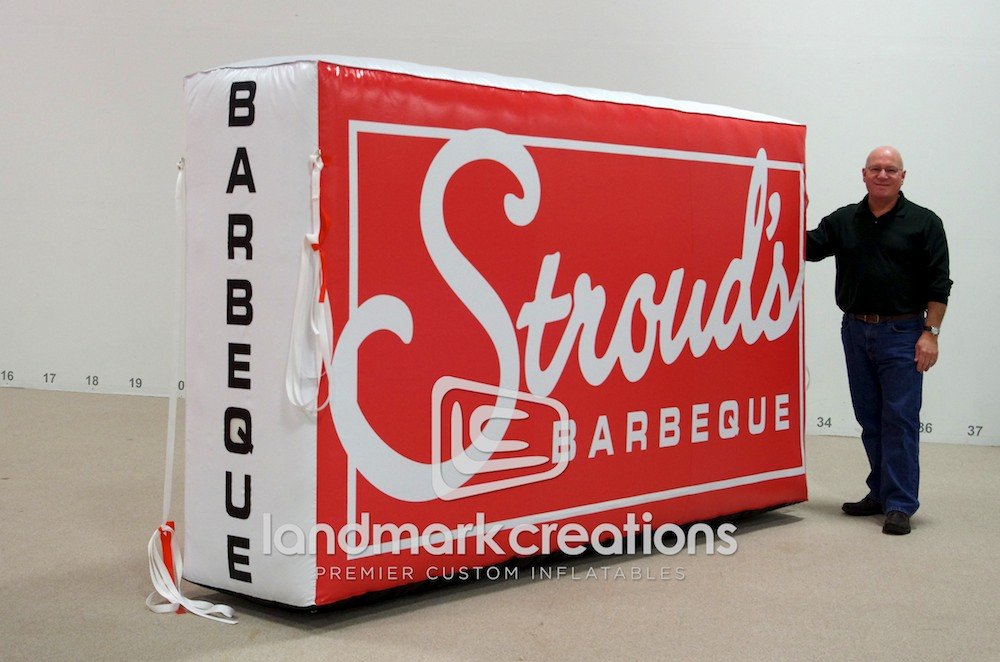Looking to stand out in a sea of food trucks? Stroud's Barbeque displays its inflatable logo and they have an instant location finder and business advertising in one!
