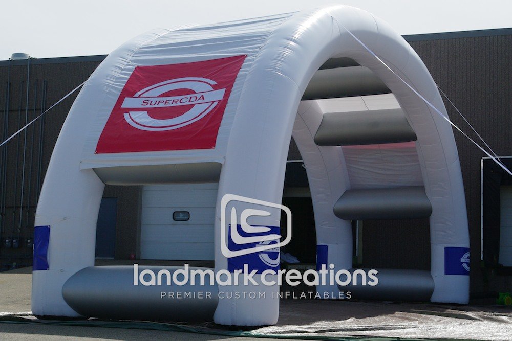 Super Cheer and Dance Association makes a big statement, creates excitement and gets lots of attention at cheer leading competitions and events with their customized dual archway.