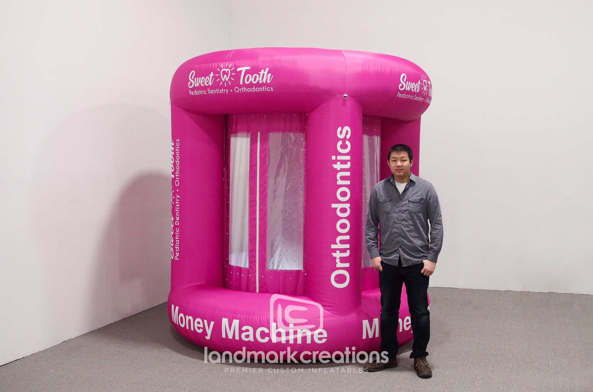 Sweet Tooth Pediatric Dentistry & Orthodonics created a vibrant pink inflatable cash booth to promote their kid-friendly branding at community events. Inflatable cash booths can be used with money or coupons, creating a fun way to interact with crowds while promoting your organization. Because they pack small, they're also easy to transport between events.