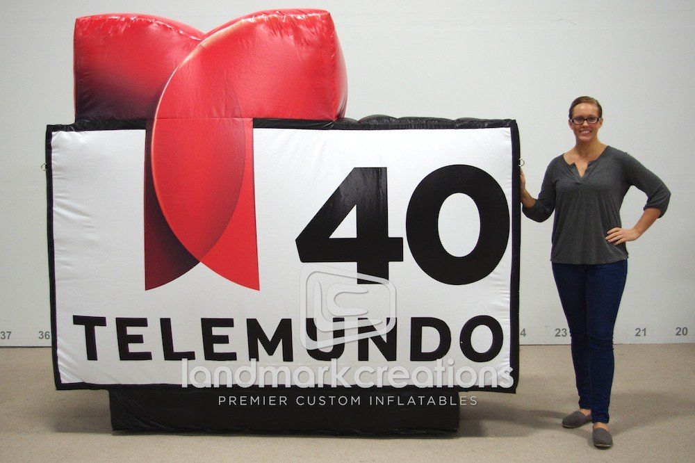 Texas TV Station Telemundo 40 promotes their entertainment channel with the help of their inflatable billboard display. Complete with logo and a giant red T, this inflatable billboard display gets lots of attention at remote events, including Borderfest and the Rodeo Livestock Show.
