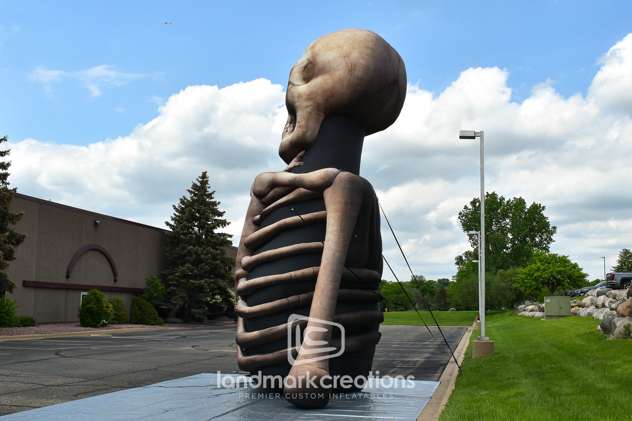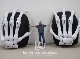 Landmark Creations designed this realistic, 25-foot-tall skeleton inflatable for The Offspring's 30th anniversary concert at the Honda Arena. This striking stage display, inflated in under a minute, provides an unforgettable visual impact for both indoor and outdoor concert venues. Explore our gallery to see more innovative stage designs and inflatables for entertainment events.