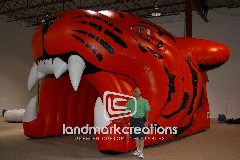 A perfect shape for teams with big cat mascots like tigers, cougars or leopards, creative mascot sports tunnels like this tigerthead, are excellent for school athletic events and social functions like homecoming and graduation celebrations.