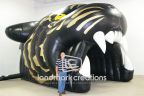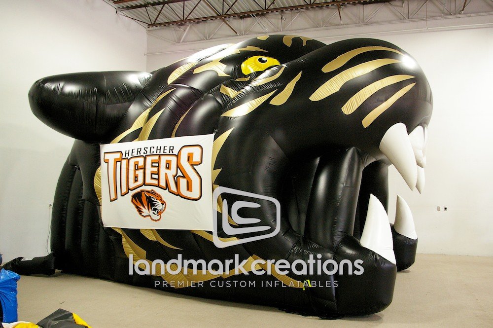 All eyes will focus on athletes pouring onto the field when they enter through an inflatable sports tunnel, like this tiger tunnel made for the Herscher football team.