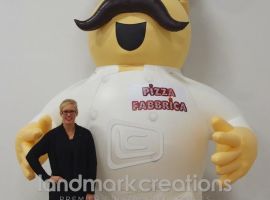 This custom inflatable pizza chef mascot for Tony Chanchere's got attention at the Winn Dixie Home and Garden Show. Creating bigger-than-life versions of your mascot is a smart way to get adults and children excited about your products.