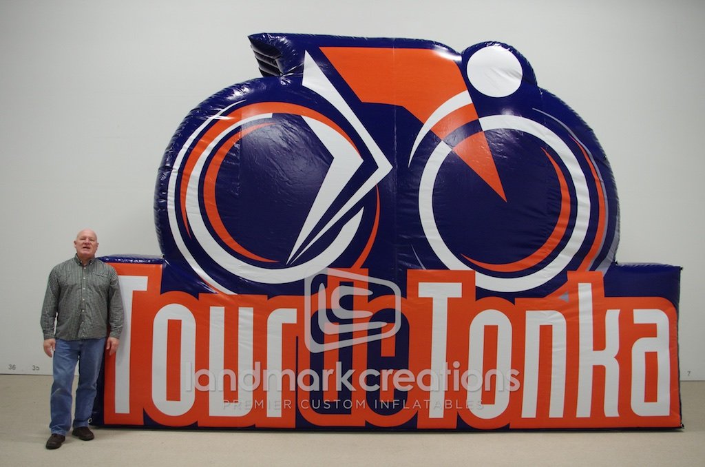 This custom built inflatable promotes sporting event Tour de Tonka, and can be used in a variety of ways such as a starting line, a backdrop for photos, or as a billboard.
