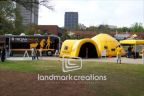 Trojan’s giant, yellow dome attracted visitors at mobile events and helped them get the word out about their product in a fun and entertaining way. Inflatable domes perform double duty as a shelter and location device.